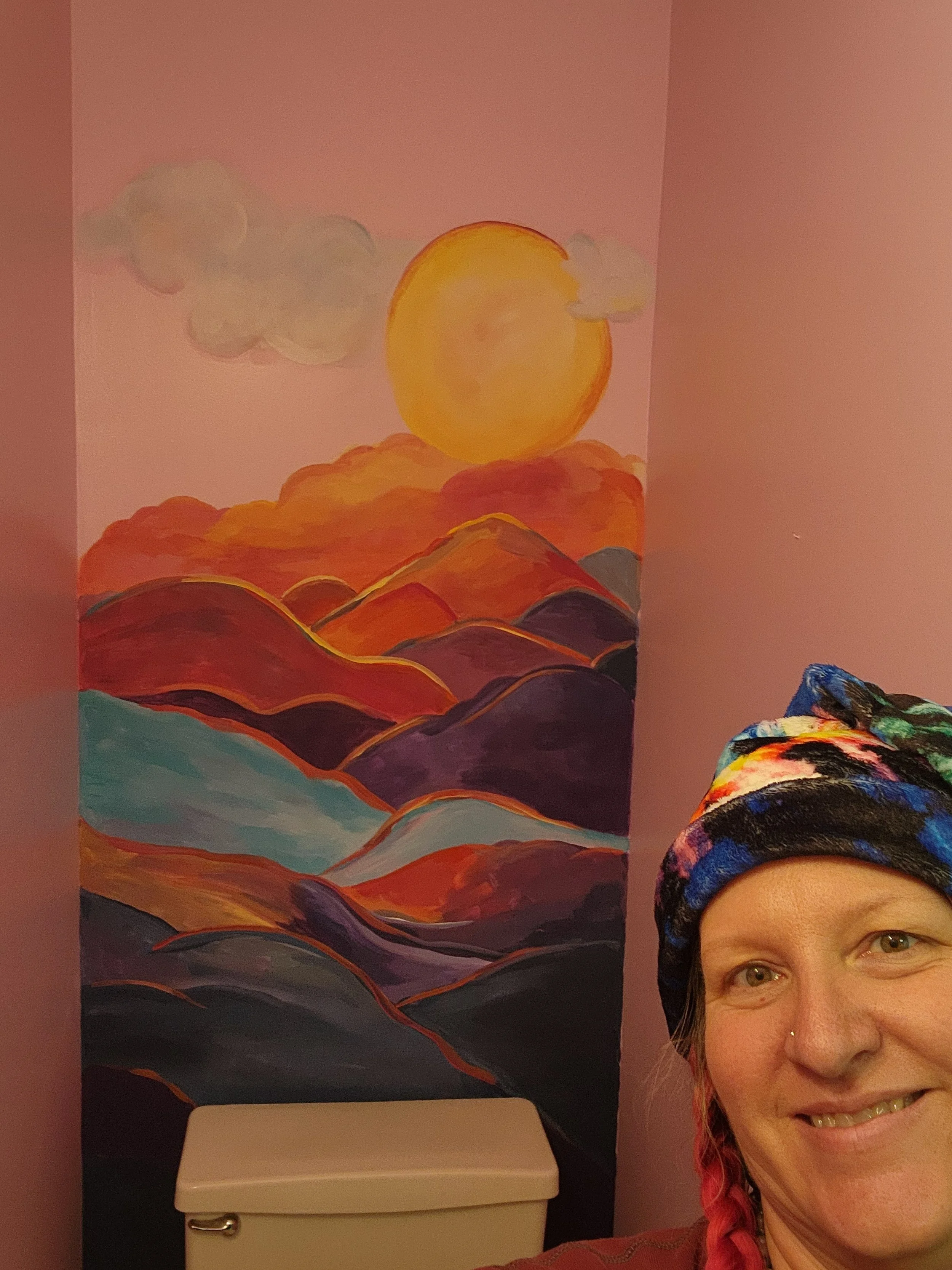 Recently with a financial advisor I was lamenting the fact that numbers just don’t work in my brain. They send me into panic mode. Even simple “how many eggs do you need” can send me into confusion! I need a lot of hand holding, encouragement, and systems to remember numbers. This financial advisor laughed and said “well you wouldn’t want me to go paint a mural or help out with the high school play set, but I can handle the stats for high school sporting events!” I then laughed because I was actually about to go paint a mural in a bathroom! Painting, creating, and colors are one of my happy places! It’s a space where I feel confident.
